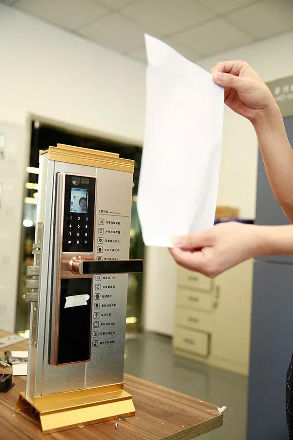 用A4纸打印的黑白照片,贴近智能锁上的人脸识别探头。